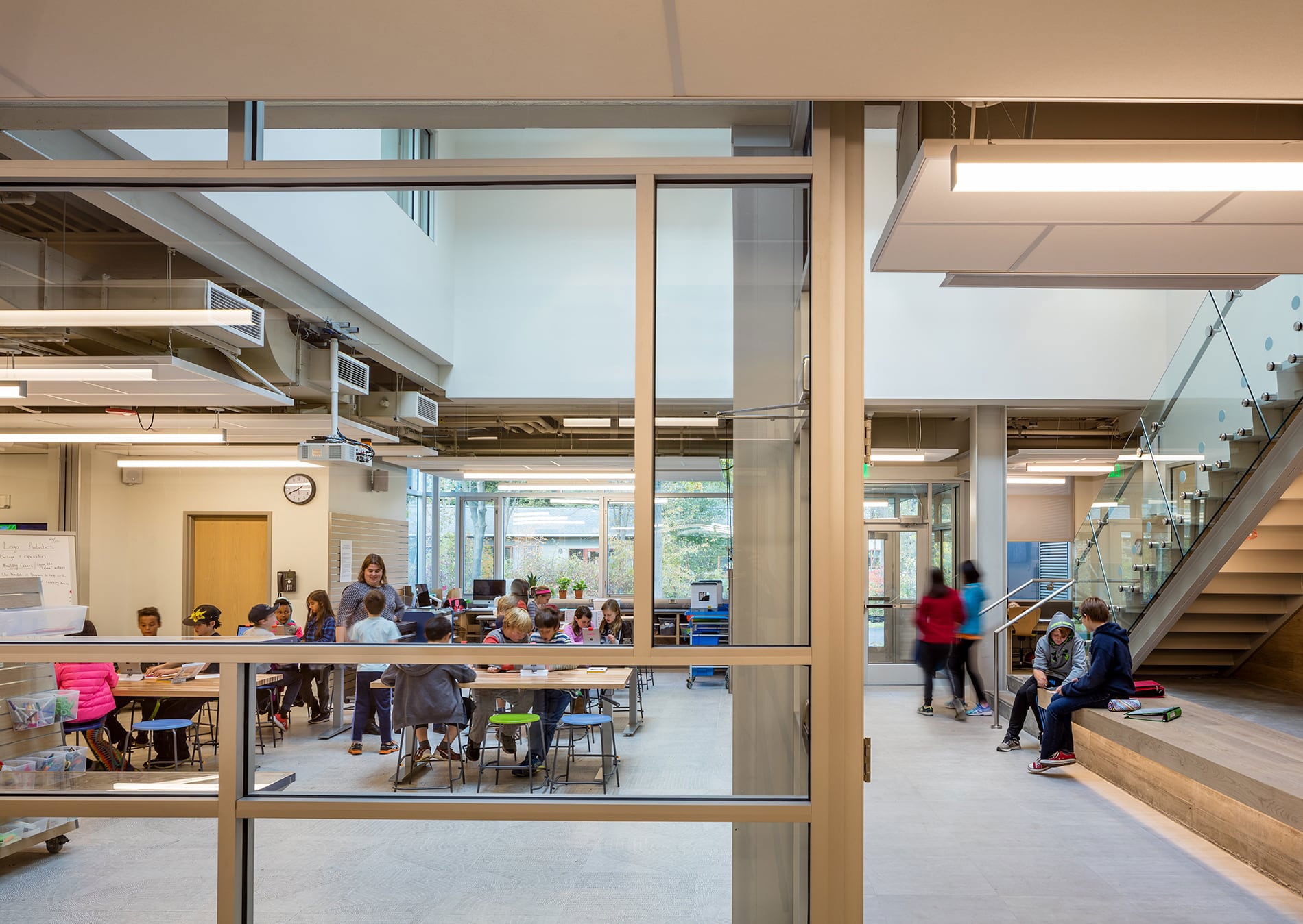 As the importance of crossdisciplinary, experientially-focused S.T.E.A.M. (science, technology, engineering, arts, and mathematics) grows, schools are focusing increasingly on what a S.T.E.A.M. program means spatially. Architecturally, the primary focus for The Hub Shady Hill School was on designing a space that promotes cross-disciplinary interaction.